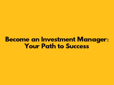 Become An Investment Manager: Your Path To Success