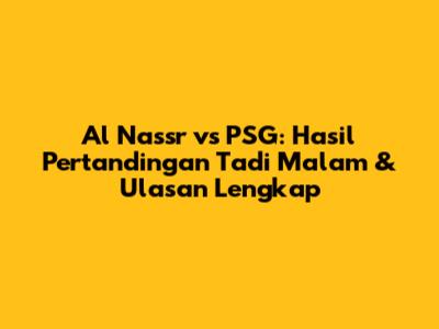 Guys, sepak bola selalu punya cerita seru, ya kan? Nah, malam ini, kita bakal bedah tuntas hasil pertandingan seru antara Al Nassr dan Paris Saint-Germain (PSG). Kita akan bahas skor Al Nassr vs PSG tadi malam, siapa yang cetak gol, bagaimana jalannya pertandingan, dan kenapa laga ini begitu dinantikan. Jadi, siap-siap buat dapet info lengkap dan analisis mendalam seputar laga panas ini!