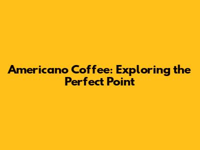 Americano Coffee: Exploring The Perfect Point