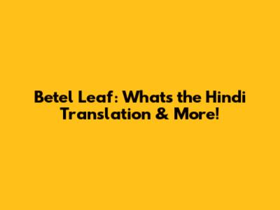 Betel Leaf: What's The Hindi Translation & More!