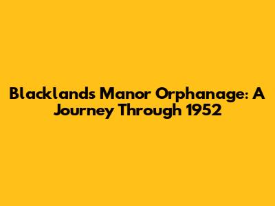 Hey guys! Ever heard of Blacklands Manor Orphanage? Well, let me tell you, it's a story that's both heartbreaking and fascinating, especially when we rewind the clock to 1952. We're gonna dive deep into the world of this orphanage, the lives of the kids who called it home, and what made this place tick. Ready? Let's go!
