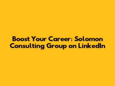 Boost Your Career: Solomon Consulting Group On LinkedIn