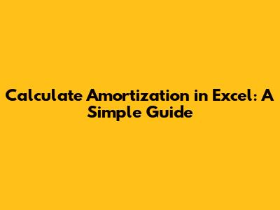 Calculate Amortization In Excel: A Simple Guide