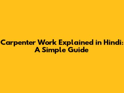 Carpenter Work Explained In Hindi: A Simple Guide