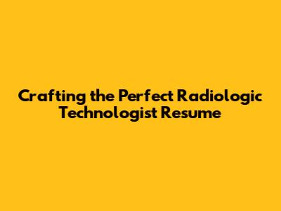 Crafting The Perfect Radiologic Technologist Resume
