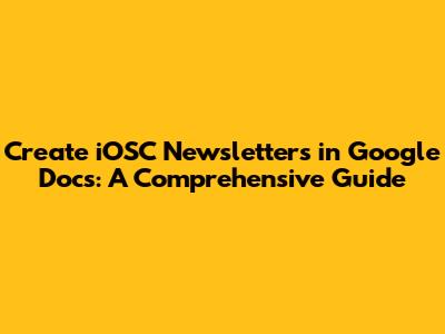 Hey guys, let's dive into creating iOSC newsletters in Google Docs! This guide is designed to walk you through everything, from the initial setup to the final send-off, ensuring your newsletters are not only informative but also visually appealing. We'll cover how to format your content, integrate images and links, and ultimately, how to distribute your newsletter effectively. No coding skills needed – just a little bit of creativity and a willingness to learn. Let's get started!