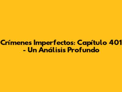 Hey guys! Ready to dive deep into the thrilling world of Crímenes Imperfectos? Today, we're dissecting capítulo 401, and trust me, it's a wild ride! This episode is packed with twists, turns, and those oh-so-satisfying moments of deduction. We're going to break down the key plot points, analyze the characters' motivations, and explore the subtle nuances that make this show so captivating. So, grab your popcorn, settle in, and let's unravel the mysteries of Crímenes Imperfectos together.