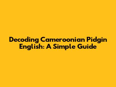 Decoding Cameroonian Pidgin English: A Simple Guide