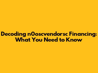 Unveiling the Mystery: What Exactly is n0oscvendorsc Financing?