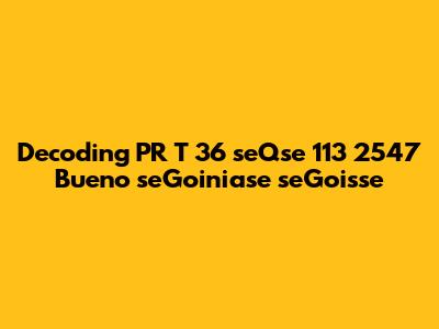 Decoding PR T 36 SeQse 113 2547: A Complete Guide