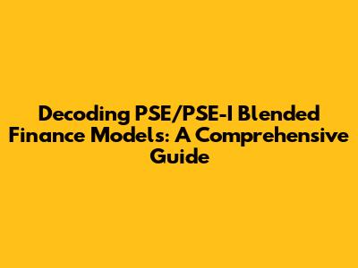 Decoding PSE/PSE-I Blended Finance Models: A Comprehensive Guide