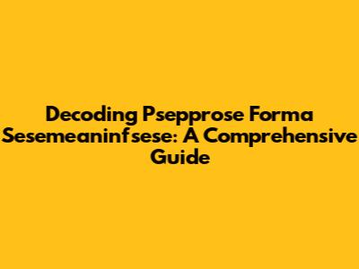 Decoding Psepprose Forma Sesemeaninfsese: A Comprehensive Guide