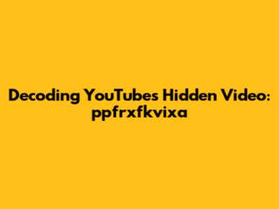Decoding YouTube's Hidden Video: Ppfrxfkvixa