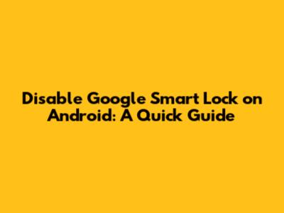 Step-by-Step Guide to Disabling Google Smart Lock