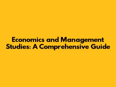 Economics And Management Studies: A Comprehensive Guide