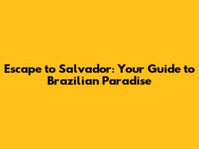 Escape To Salvador: Your Guide To Brazilian Paradise