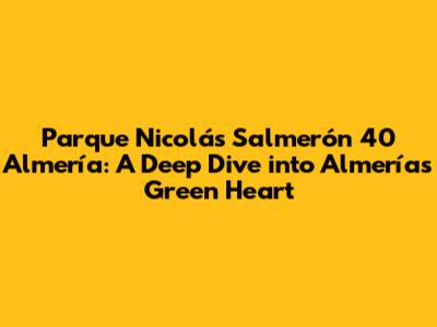 Hey guys! Have you ever dreamt of escaping into a lush green paradise right in the middle of a bustling city? Well, let me introduce you to Parque Nicolás Salmerón in Almería! This isn't just any park; it's a vibrant, historical, and utterly charming spot that captures the very essence of Almería. Whether you're a local or a tourist, a visit to this park is an absolute must. Let's dive into everything that makes Parque Nicolás Salmerón so special, covering its history, what you can do there, and why it’s the perfect place to unwind and soak in the Spanish atmosphere.