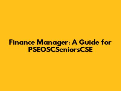 Finance Manager: A Guide For PSEOSCSeniorsCSE