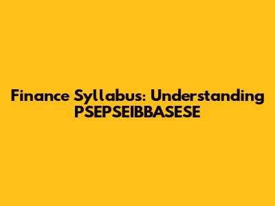 Hey everyone! Today, we're diving deep into a topic that might sound a bit complex at first glance, but trust me, it's super important if you're studying finance or working in the financial world. We're talking about PSEPSEIBBASESE as it appears in finance syllabi. Now, I know what you might be thinking, "What on earth is PSEPSEIBBASESE?" Don't sweat it, guys! We're going to break it down, make it super clear, and show you why understanding this concept is a game-changer for your financial knowledge. Think of this as your friendly guide to demystifying those tricky terms you find in your textbooks and lecture notes. We'll explore what it means, why it's included in your finance syllabus, and how it connects to the bigger picture of financial studies. So, grab your favorite drink, get comfy, and let's get this financial party started!