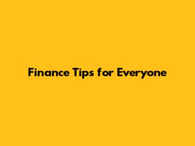 Finance Tips For Everyone