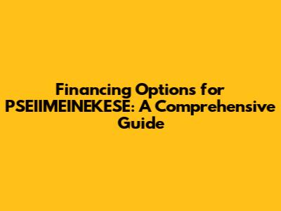 Financing Options For PSEIIMEINEKESE: A Comprehensive Guide