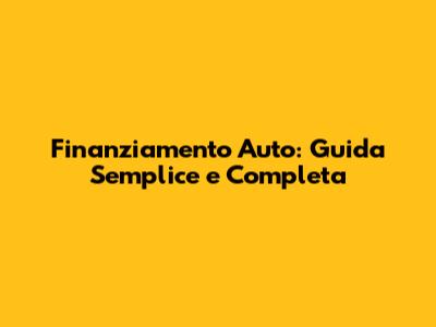 Ciao a tutti, appassionati di motori! Se siete qui, probabilmente state pensando di acquistare una nuova auto e vi state chiedendo come funziona il finanziamento auto. Beh, siete nel posto giusto! In questa guida, vi spiegherò in modo semplice e completo tutto quello che c'è da sapere sul finanziamento auto, dai diversi tipi di finanziamento alle condizioni da valutare, fino ai consigli per scegliere l'offerta migliore. Preparatevi a diventare dei veri esperti del finanziamento auto!