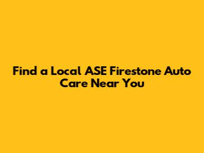 In conclusion, finding a reliable ASE certified Firestone auto care center near you is essential for maintaining the health and longevity of your vehicle. These centers offer a combination of trusted brand recognition and certified expertise, ensuring that your car receives the highest standard of service. From routine maintenance to complex repairs, ASE certified technicians are equipped to handle all your automotive needs with precision and care. By choosing an ASE certified Firestone auto care center, you can have peace of mind knowing that your vehicle is in the hands of qualified professionals who are committed to quality and customer satisfaction. Regular auto care is not just about fixing problems; it's about preventing them and ensuring your vehicle runs smoothly and safely for years to come. Make auto care a priority and enjoy the many benefits it has to offer, including improved fuel efficiency, increased vehicle lifespan, and enhanced safety. With the resources and tips provided, finding a Firestone auto care center near you is now easier than ever. So, take the time to locate a center and schedule your next service appointment. Your car will thank you for it.