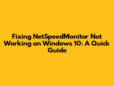 Fixing NetSpeedMonitor Not Working On Windows 10: A Quick Guide