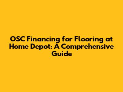 Hey guys! Thinking about sprucing up your home with new flooring but worried about the upfront costs? Well, you're in luck! Let's dive deep into how OSC financing at Home Depot can be your best friend in making those home improvement dreams a reality. Getting new floors can totally transform a space, making it feel fresh and updated. Whether you're dreaming of sleek hardwood, cozy carpet, or durable tile, the options can seem endless. But let's be real – flooring projects can also be a significant investment. That's where understanding your financing options becomes super important. OSC, or Optimal Selection Company, provides financing solutions that can help you manage the expenses of your home improvement projects. When you're at Home Depot, looking at all those amazing flooring choices, knowing you have a solid financing plan in place can make the whole experience way less stressful and a lot more exciting. So, stick around as we break down everything you need to know about using OSC financing to get the flooring you've always wanted without emptying your wallet. We'll cover what OSC financing is, how it works at Home Depot, the benefits it offers, and even some tips for making the most of it. Let's get started and turn those flooring fantasies into your home's new reality!