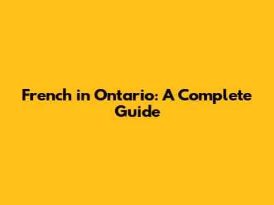 French In Ontario: A Complete Guide
