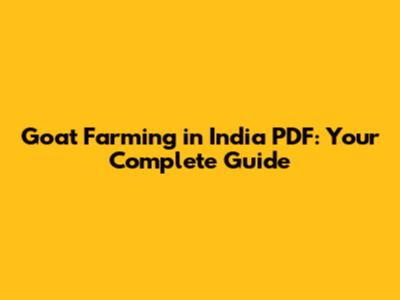 Goat Farming In India PDF: Your Complete Guide