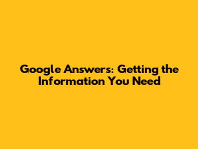 Google Answers: Getting The Information You Need
