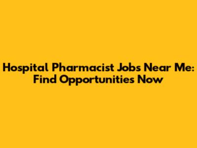 Hospital Pharmacist Jobs Near Me: Find Opportunities Now