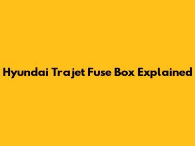 Hyundai Trajet Fuse Box Explained