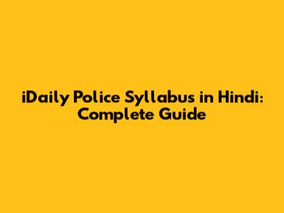 IDaily Police Syllabus In Hindi: Complete Guide