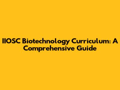 IIOSC Biotechnology Curriculum: A Comprehensive Guide