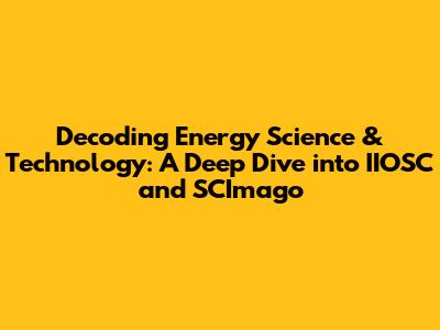 Hey guys! Ever found yourself drowning in the sea of scientific publications, especially when trying to keep up with the latest in energy science and technology? It can be overwhelming, right? Well, that's where tools like the IIOSC (don't worry, we'll break down what it stands for) and SCImago come to the rescue. They help us navigate, analyze, and understand the complex world of scientific research. So, buckle up as we dive into the fascinating intersection of energy, technology, and research metrics!