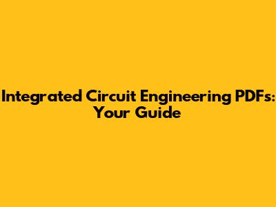 Integrated Circuit Engineering PDFs: Your Guide