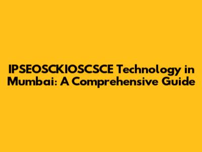 IPSEOSCKIOSCSCE Technology In Mumbai: A Comprehensive Guide