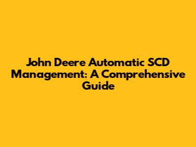 John Deere Automatic SCD Management: A Comprehensive Guide