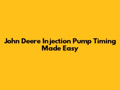 How to Time a John Deere Injection Pump: A Step-by-Step Guide