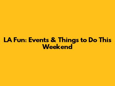 LA Fun: Events & Things To Do This Weekend