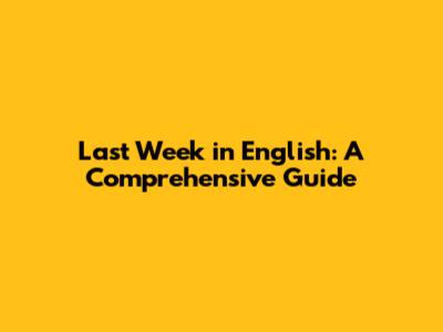 Last Week In English: A Comprehensive Guide