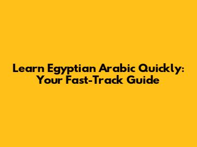 Learn Egyptian Arabic Quickly