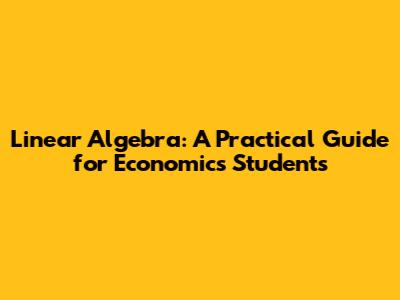 Linear Algebra: A Practical Guide For Economics Students
