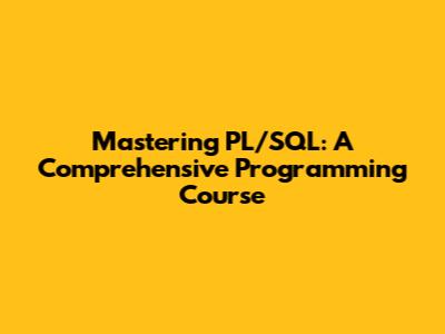 Mastering PL/SQL: A Comprehensive Programming Course