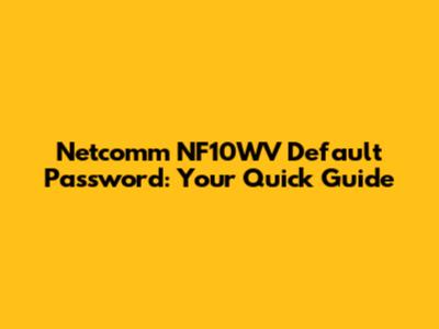 Netcomm NF10WV Default Password: Your Quick Guide