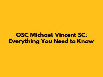 OSC Michael Vincent SC: Everything You Need To Know