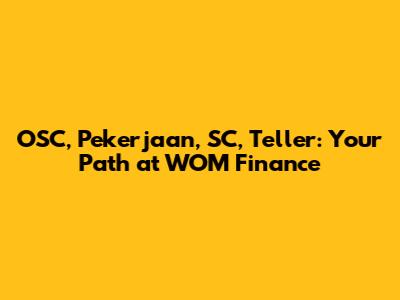 OSC, Pekerjaan, SC, Teller: Your Path At WOM Finance