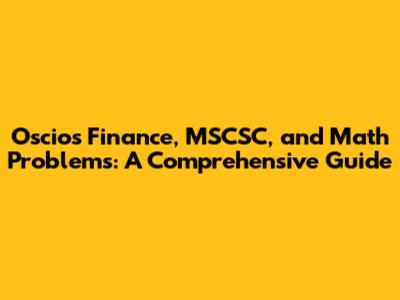 Oscios Finance, MSCSC, And Math Problems: A Comprehensive Guide